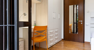 5 CAMERE DA LETTO FINEMENTE ARREDATE CON LETTO, ARMADIO, SCRIVANIA E SEDIA.